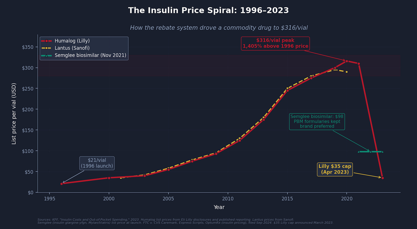 No single drug illustrates the PBM rebate mechanism more cleanly than insulin.